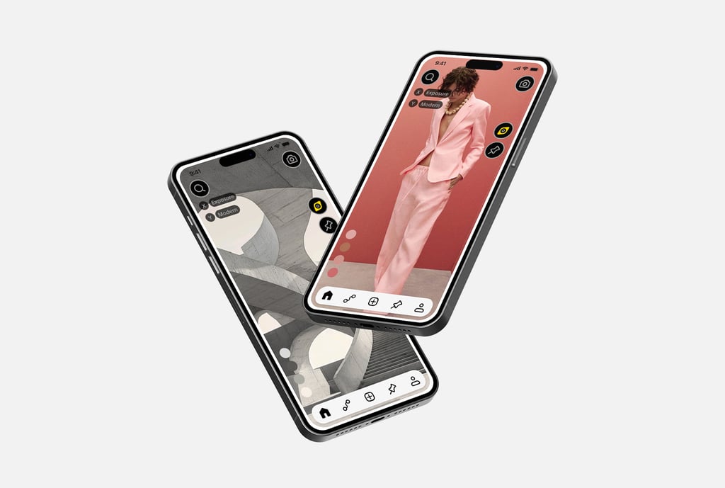 Lucid is a visual discovery platform, unlike traditional platforms such as Pinterest or Instagram, which limit you to downward scrolling and deliver content through algorithms designed not to enrich your experience but to maximise your ‘time on device’, Lucid offers freeform navigation. Users can scroll in any direction across two customisable axes – thus giving control back to the user.