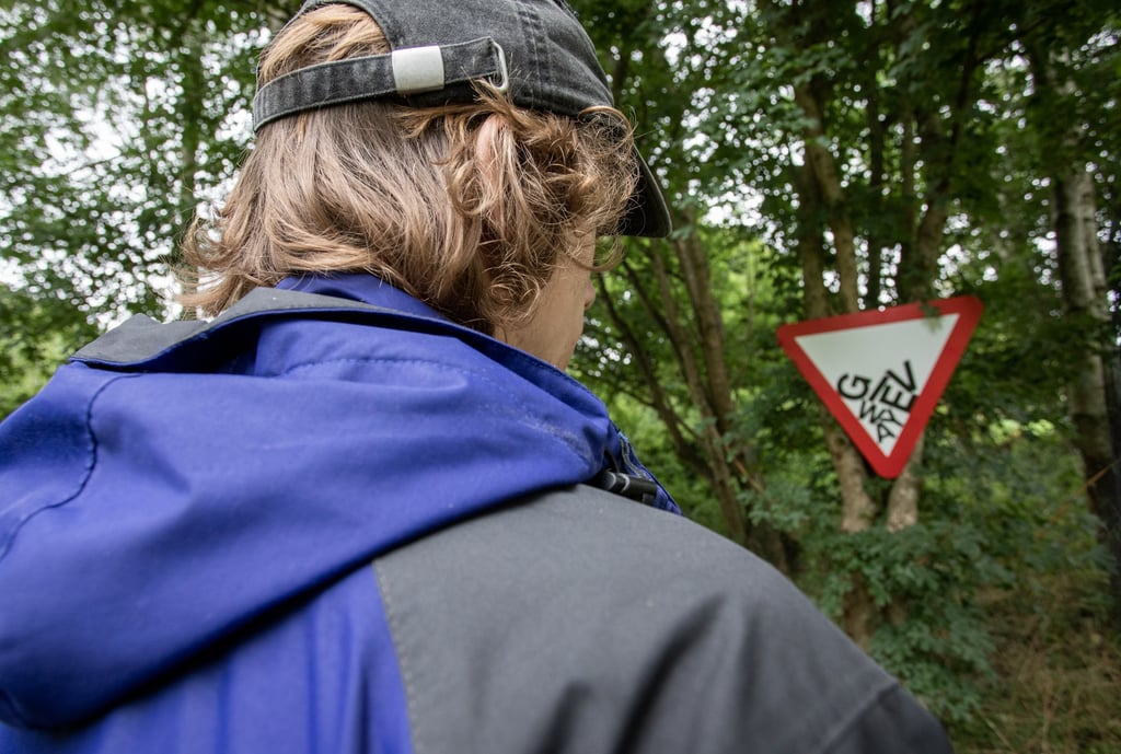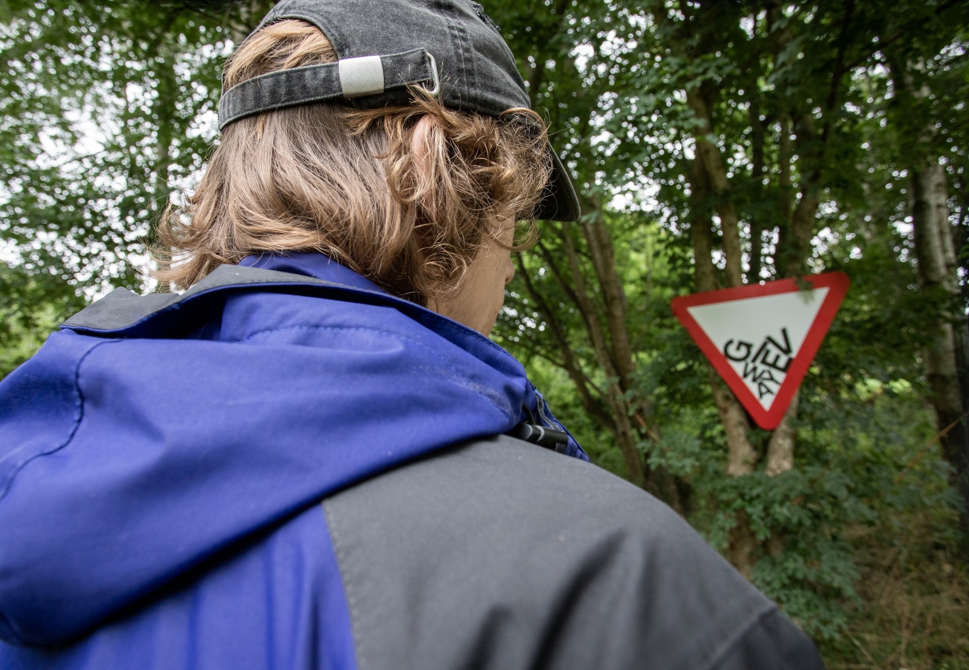 Road sign displayed in the modern art oxford show, 'Signs, Symbols, Sounds'.