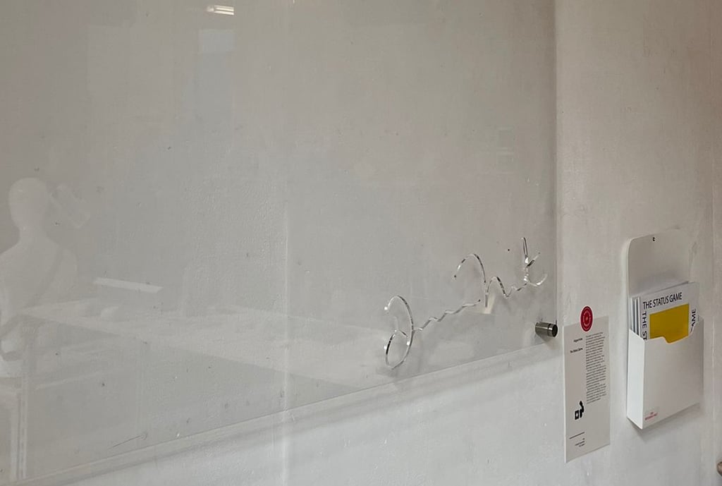 Large wall-mounted acrylic stencils explore the signature as a transparent layer of value in contemporary art. The series features the signatures of Damien Hirst, Takashi Murakami, Anish Kapoor, Jeff Koons.
